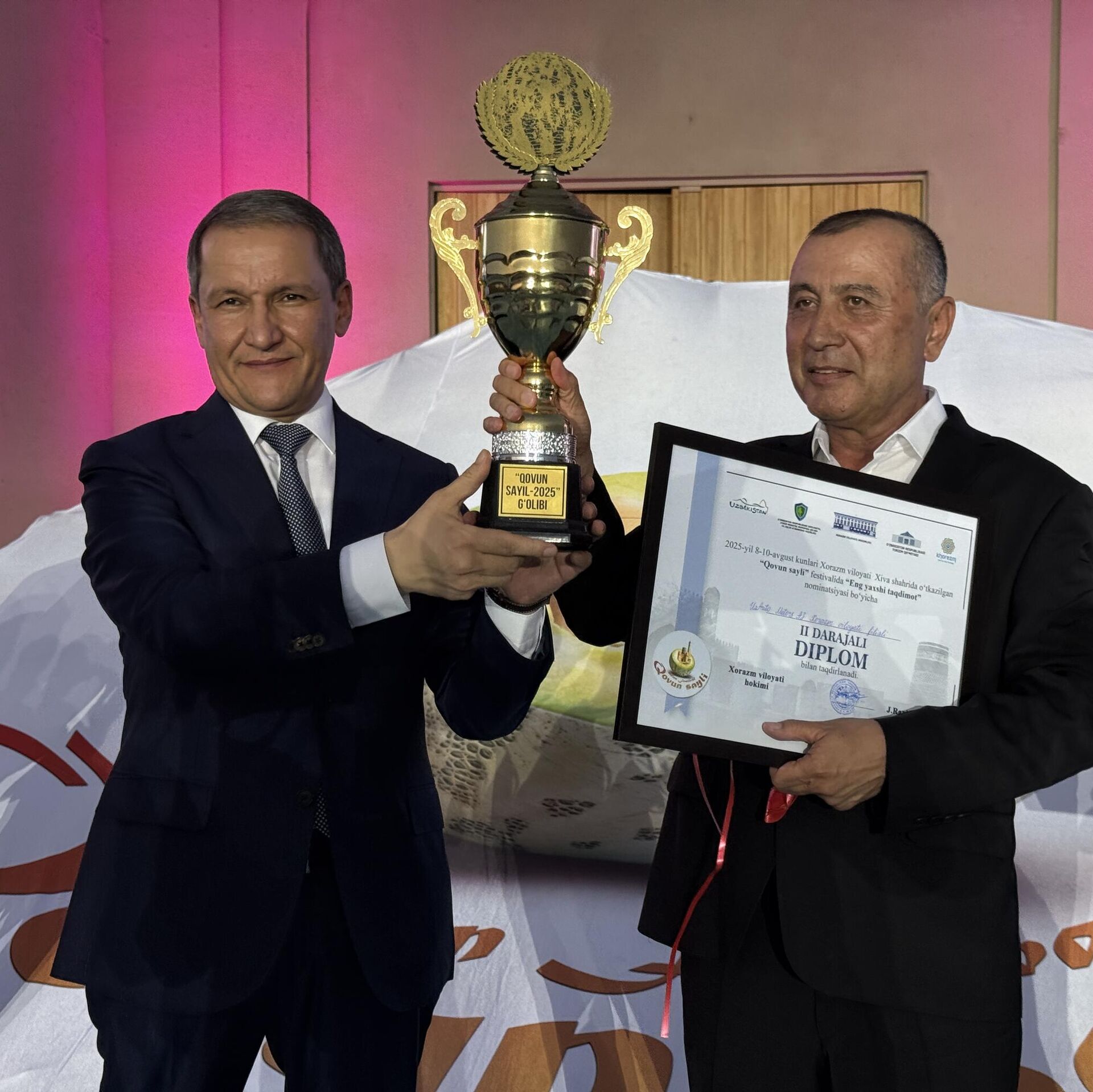 Xivada "Qovun sayli" yakunlandi. G‘olibga "Treker" avtomobili topshirildi. Tantanali taqdirlash marosimidan so‘ng mahalliy va xorijiy san’atkorlar ishtirokida gala-konsert bo‘lib o‘tdi.