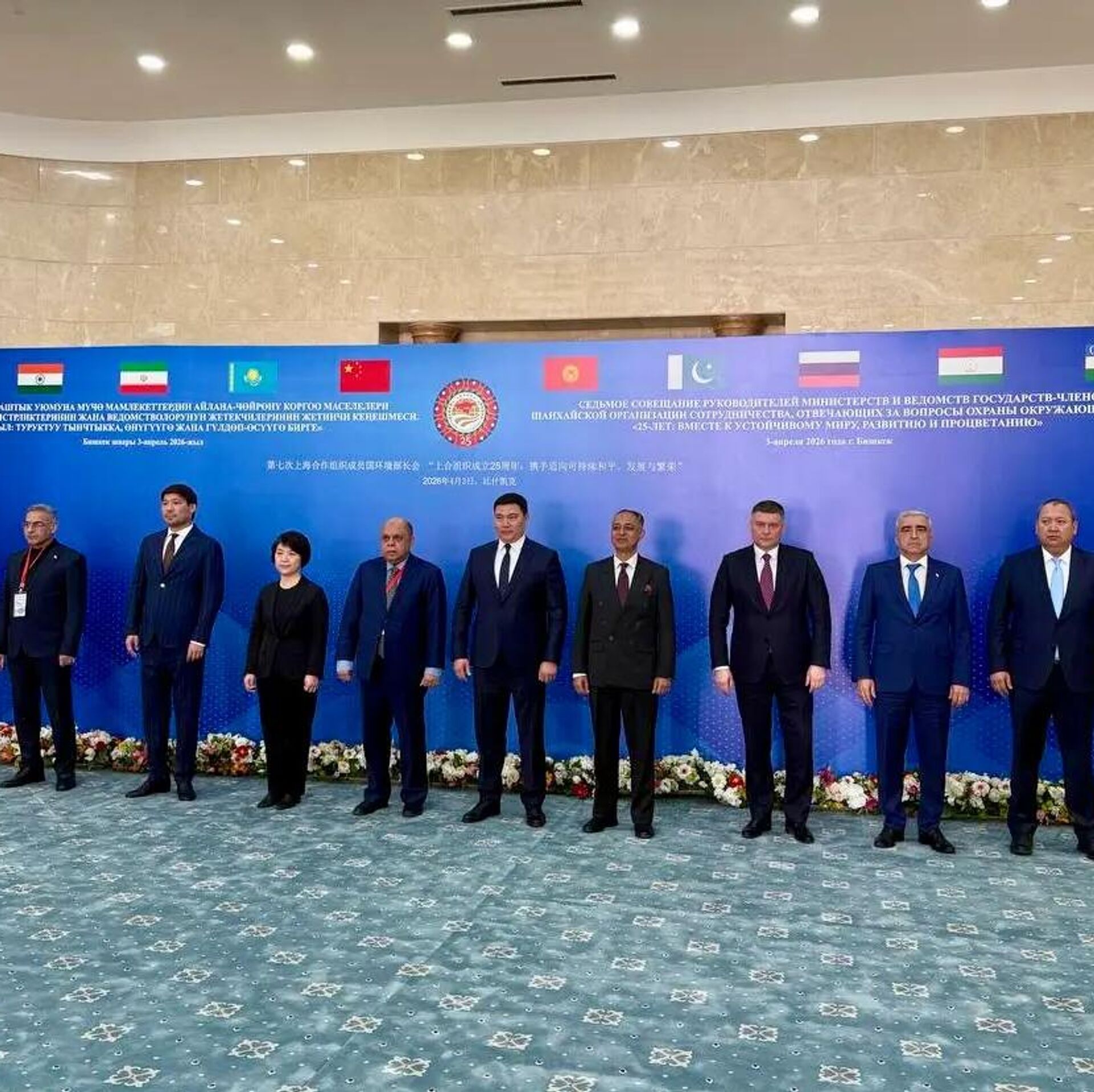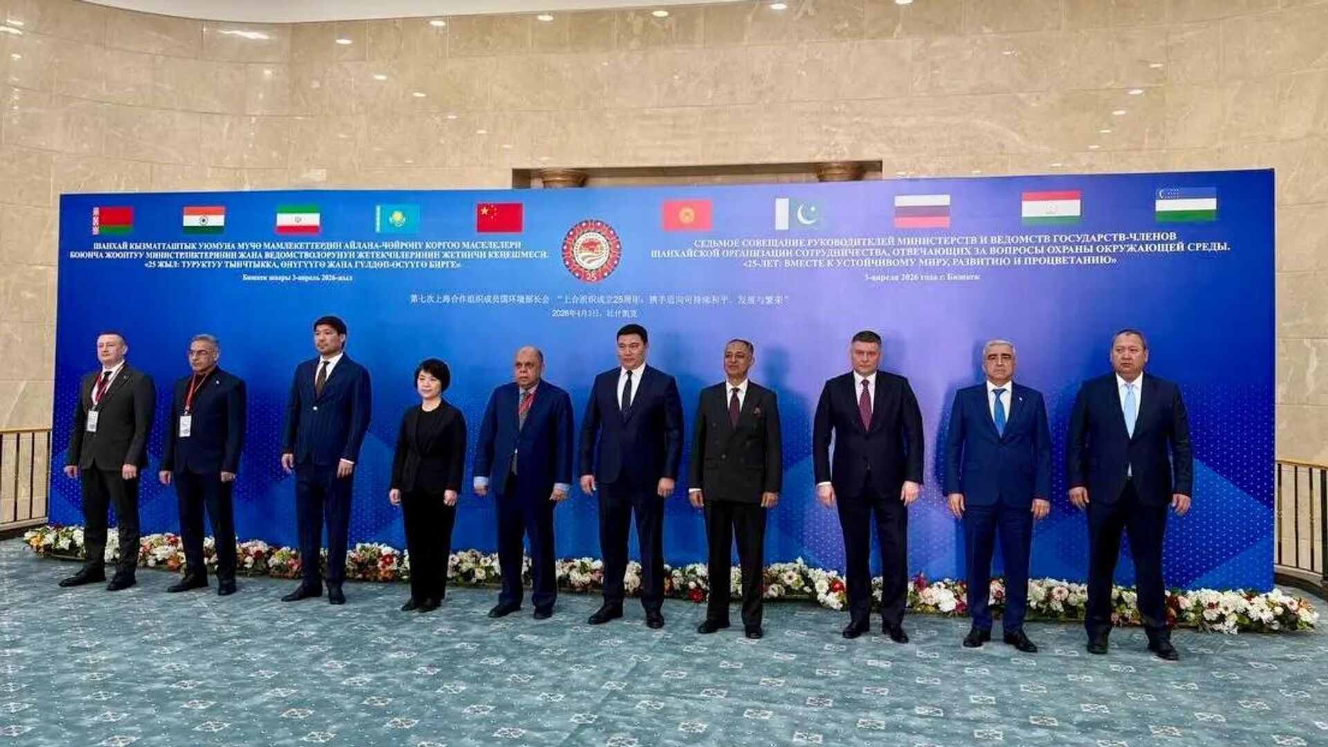 Delegatsiyaga Ekologiya va iqlim o‘zgarishi milliy qo‘mitasi raisi o‘rinbosari Jusipbek Kazbekov boshchilik qildi. “Barqaror tinchlik, taraqqiyot va farovonlik yo‘lida 25-yil birga” mavzusidagi yig‘ilish 2–3 aprel kunlari Bishkek shahrida bo‘lib o‘tdi.